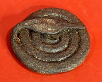 25-190. A hand-wrought iron coiled snake, with it’s head resting on it’s tightly coiled body. Originally designed as a whimsical flint striker, but today equally useful as an unusual paper weight. It measures approximately 2.25” in diameter. Found in New England and likely made in that region. The piece dates from the late 18th century, ca. 1780.