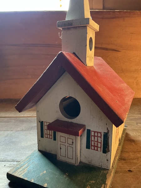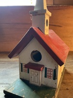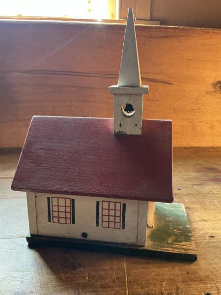 13 by 9 1/2 by 5 1/2 inches and is in great shape, looks to have never been used. See the small bell in the steeple ? Nice