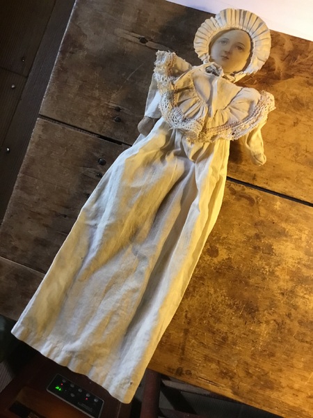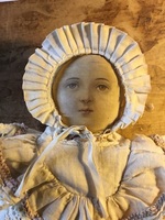 She is only 10 inches tall but has the long christening style gown total length is near 18 inches. Just wonderful condition with a complete body and quite a rare style. Sweetest face printed cloth doll, very nice.