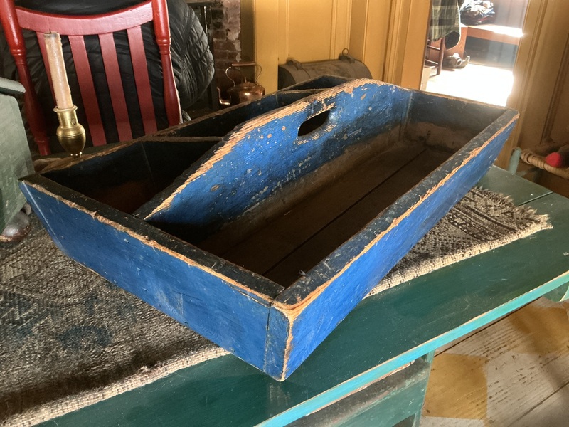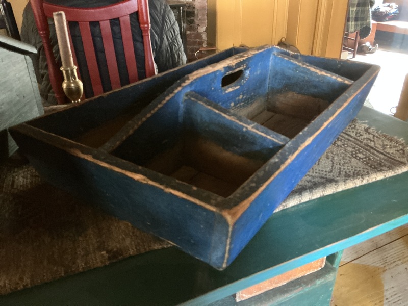 Measures 27 by 16 1/2 by 6 3/4 inches beautiful blue original paint, in perfect condition. I bought this 30+ years ago. Just selling some of the pretty things I have, gone dark red. Your gain. If I can save some on the shipping will be glad to refund. every time I bring this out I fall in love with it, just to nice !