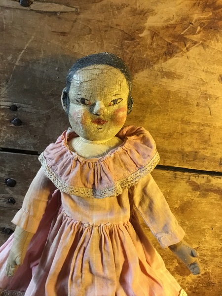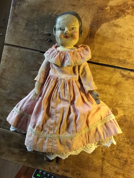 She is nice and has all original dress and under wear. Sweet face with ears and she has stitched fingers at her smaller size of 12 inches, very nice !!
