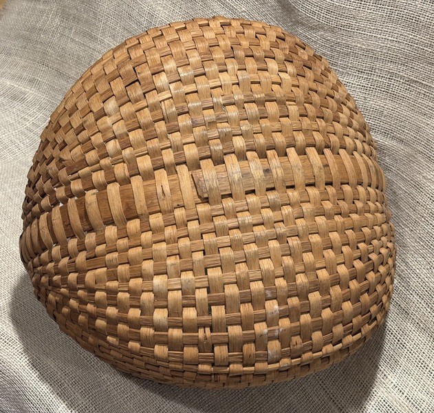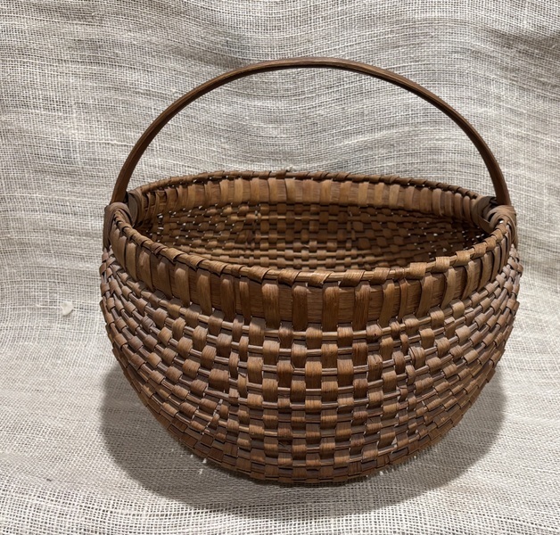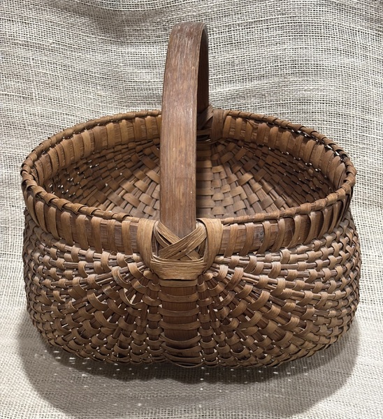 Nice early small Taghkanic basket. Nice patina, raised center "kick" with double bottom. In overall good condition, hard to find minimal breaks-3 on bottom. Measures 7 1/8" diameter, 3 3/4" high.