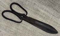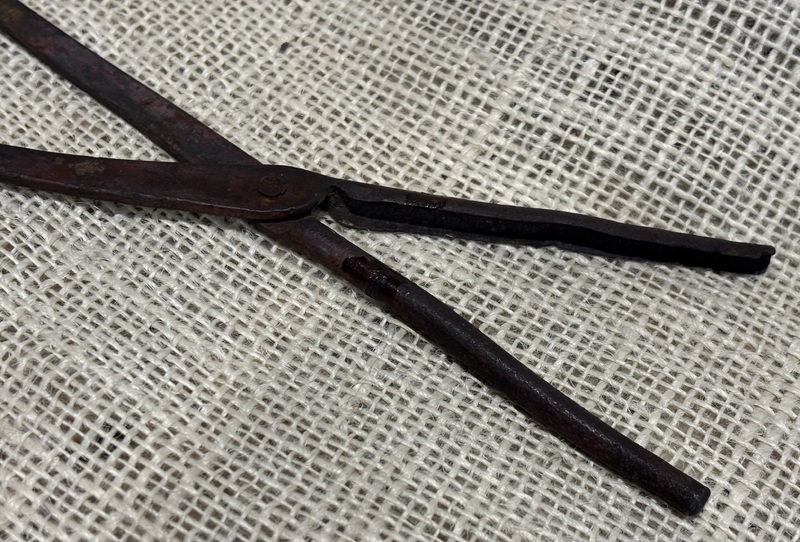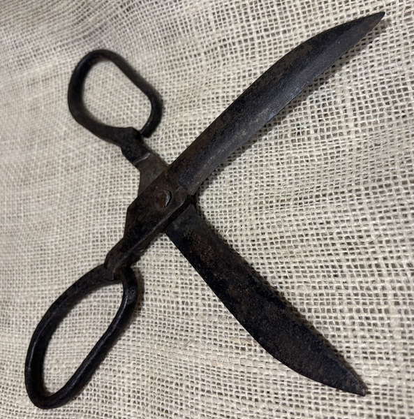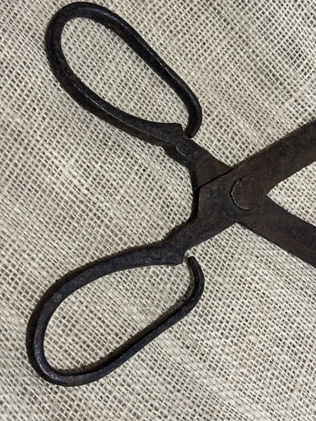 Early wrought iron shears. Wonderful surface, late 18th century. Measures 10" long.