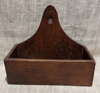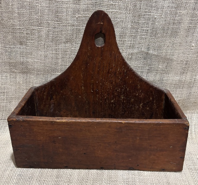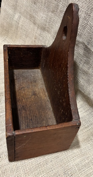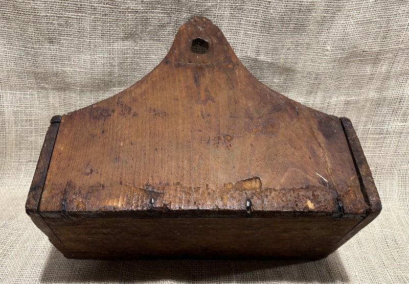 Wonderful C. 1750-1800 New England open candle box. Pine with original red paint, great surface! Butt joint with square nail construction. Similar example in George Neumann's "Antique Country Furnishings" pg.39. Fantastic candle box! Measures 12 3/4" wide x 5 3/4" deep, 11 1/4" high.