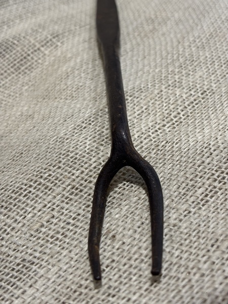 Nice early wrought iron fork. 18th century, great patina. Measures 13" long.