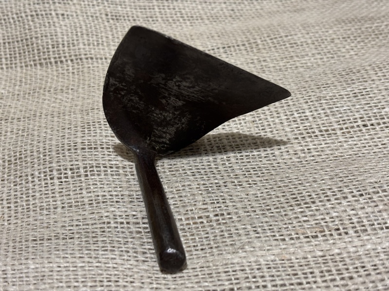 Nice small Pennsylvania iron doughscraper. 19th century, simple form, measures 3 1/4" long.