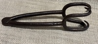 Wonderful 18th century wrought iron ember tongs. Nice rat tail ends on finger portions. Measures 13 1/2” long.