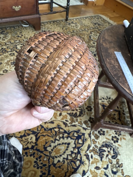 This is about the best surface you will find!!! Tiny in size measuring 3 inches and coming out of west Va. great color age and condition is good with a few minor breaks . I would rate this a 8 when it comes to condition age and size. Southern baskets of any kind are rare !!!
