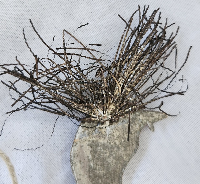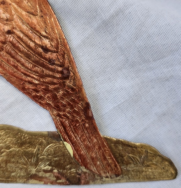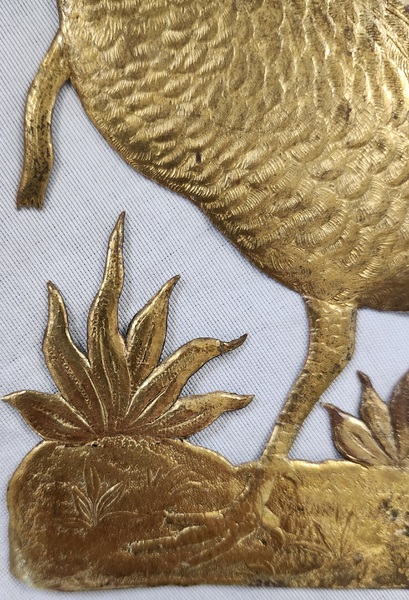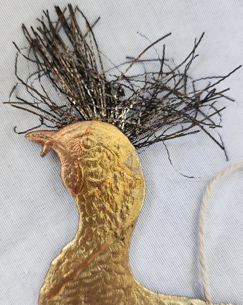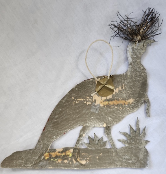 For sale is a very nice antique German pressed paper/cardboard turkey ornament. The paper has a gold and copper metallic surface, and there is a piece of silver tinsel on the bird's head. The ornament measures about 7" tall and 6 1/2" wide, and is in nice antique condition, with minor signs of age, but no significant flaws. Please look carefully at the pictures, and contact me with any questions or for additional photos.