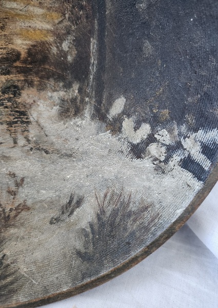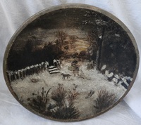 For sale is a very sweet antique painted wood bowl that has the folk art painted winter scene that includes a man and his dog in the center. The bowl measures about 9 3/4" in diameter and 2" deep, and is in nice, but antique condition, with some paint wear especially on the area where the man is in the center, but at least in my opinion, it displays well. Please look carefully at the pictures, and contact me with any questions or for additional photos.