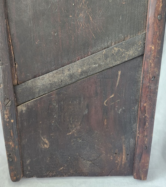 For sale is a terrific antique dated 1827 Scandinavian primitive folk art carved mallet, or at least that's what I think it is, lol. It is curved on one side with scribed religious designs, as well as the date of 1827, and the initials "RIA". There are scallops on one end, and sort of notch carvings around the perimeter. The other side is flat. The tool measures about 15" long, 5 1/4" wide, and 1 1/2" thick, and is in antique condition, with significant signs of age and use including tight cracks and wormholes. Please look carefully at the pictures, and contact me with any questions, or for additional photos.