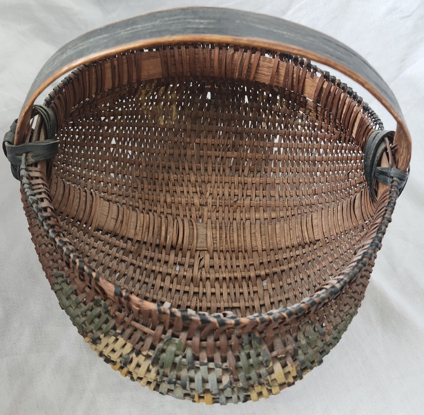 For sale is a wonderful antique gathering basket in what was described as original gray paint that was formerly in the collection of Sam and Patty McCullough. It measures about 11 1/2" in diameter and 13" tall including the handle, and is in nice antique condition, with no significant issues. Please look carefully at the pictures, and contact me with any questions, or for additional photos.