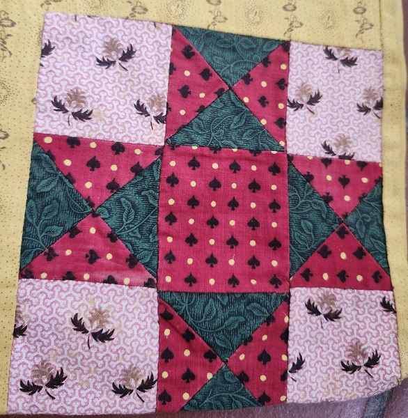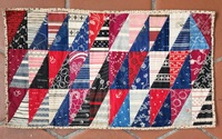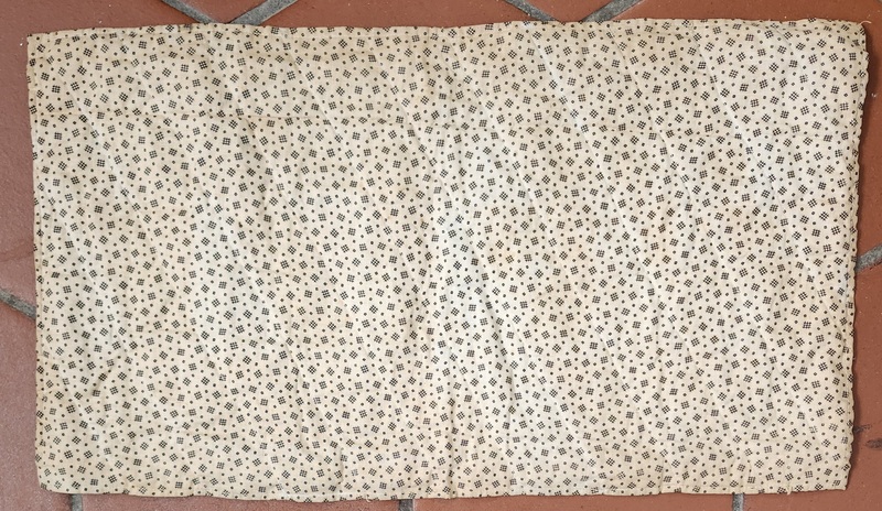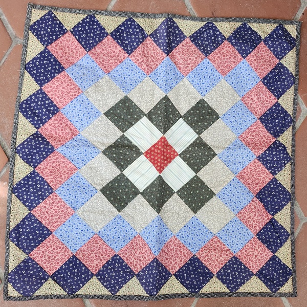 For sale is a sweet antique doll quilt or table mat that I acquired in Nashville. It is hand pieced and treadle machine quilted ins simple diagonal lines. It has a nice variety of early fabrics, and measures about 19 1/2" x 11". It is in very nice condition, with some toning on the back, but no holes, rips, or repairs. Please look carefully at the pictures, and contact me with any questions or for additional photos.