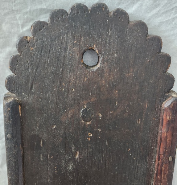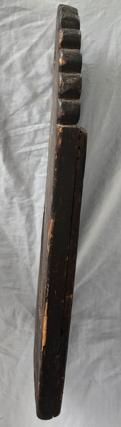 For sale is a 19th century primitive hand carved folk art wash stick with a stars design. I acquired it from a sale in Connecticut, but I don't know where it was made. It has a "U" shaped carved handle, and notch carving on the sides. In addition, it comes with a metal display stand. It measures about 29 1/2" long, 3 1/4" wide, and 1" thick, and is in nice antique condition, with signs of age and use, but no significant flaws. Please look carefully at the pictures, and contact me with any questions, or for additional photos.