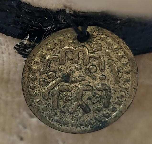 For sale is a very unusual antique hand carved folk art butter, or possibly Catholic wafer print in a religious design that most likely depicts a saint or other holy figure, with writing on either side, but I don't know what language it is. I acquired it from a sale in Pennsylvania, but I think that it is most likely Eastern European, possibly Greek Orthodox, although I don't know for sure. There is a religious symbol on the back as well, and the piece measures about 6" in diameter on the front, and the handle on the back is about 2 3/8" x 2 1/8". The piece is in very nice antique condition, with signs of age, but no significant flaws. Please look carefully at the pictures, and contact me with any questions, or for additional photos.