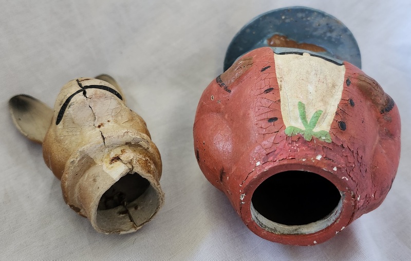 For sale is a terrific antique painted redware bank that I acquired from Maryland, but that may have been made in Pennsylvania, although I can't completely verify that. I have never seen this form before. It measures about 7" long, 6 1/2" tall, and 2 1/2" wide, and is in very nice antique condition, with signs of age, but no significant issues. It should be noted that the facial features may have been repainted, although I'm not completely sure. Please look carefully at the pictures, and contact me with any questions, or for additional photos.