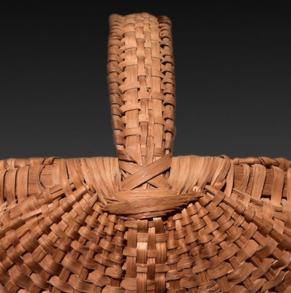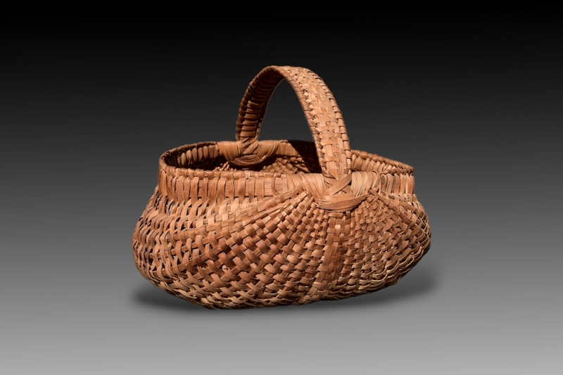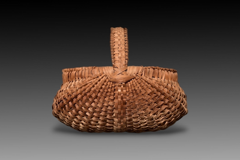 Here is a wonderfully preserved late 19th c. basket in oiriginal unpainted surface. Intricately made of woven ash with the handle ornamented with additional ribs and weavers. Excellent condition with no visible breaks which is a scarce feature for these types of baskets. Southern Appalachian area. Ca. 1890. 12"W x 10'T.