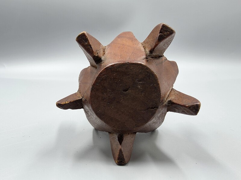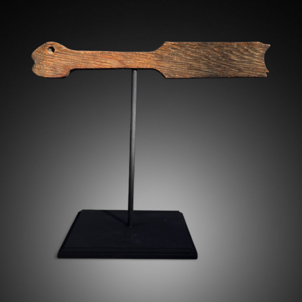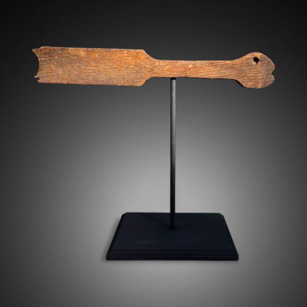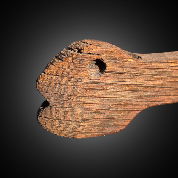 Here is a really neat piece...a 19th c. wooden weathervane in the shape of a turtle head. Made of oak wood and retains remnants of original red paint on the underside. Heavily weathered (as expected) but in good condition with phenomenal historical qualities. Likely had glass marbles for eyes which are LONG gone. Mounted on a flat black base for display. 17"L.