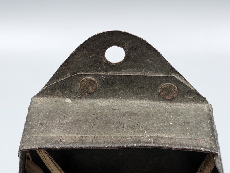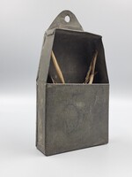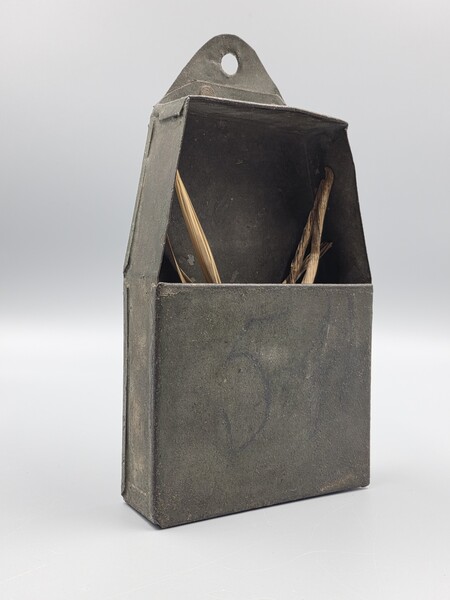 A 19th c. pine wood spill box in unfinished color. Constructed with small iron nails and has the most ideal surface with oxidized color! New England origin. 9 5/16"T x 4 1/2"W.
