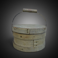 An early herb box in original unfinished surface. Constructed of ash wood bands and body with an eastern white pine lid and bottom. Retains a desirable as-descended surface, rich in oxidized color. Northeast origin. Ca. 1830. 14 3/4"W
