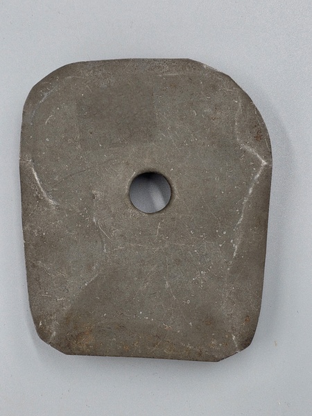 A grouping of 4 19th c. hunting items: early leather shot pouch, iron shot mold, small power horn with metal ornamentation and a 28"L leather hunting bag. All items arenin excellent original condition with old historic surfaces. Sold as a set. Ca. 1830-1850.