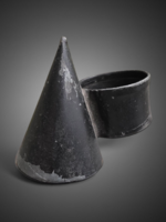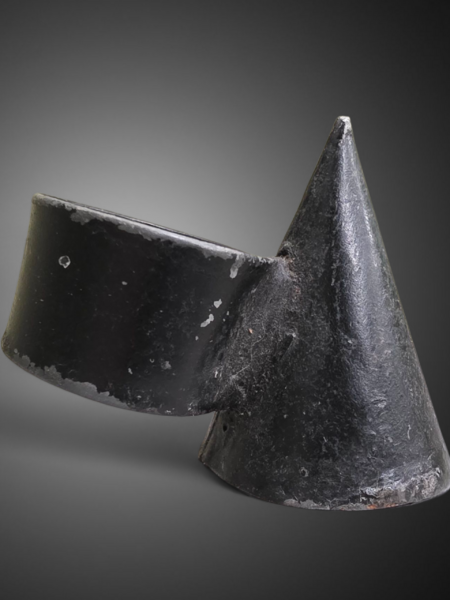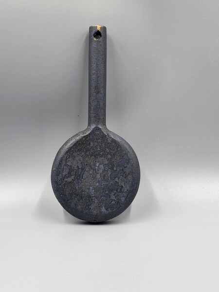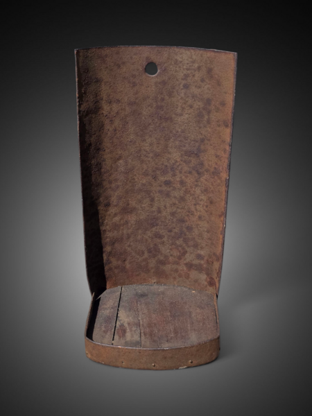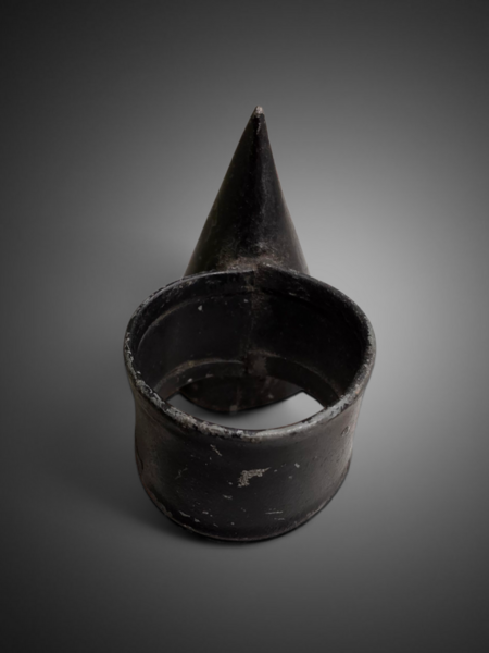 A 19th c. tinned sheet iron candle snuffer in original black paint. Features a really neat oversized ring handle/finger grab for its use. Has great black paint. Excellent condition. Northeast origin, possibly Pennsylvania.