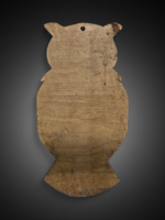 A 1920s or 1930s grai painted pressboard template for making owl decoys. Retains teally.great original taupe colored paint with black graining. The reverse is lined with foil. Overall good condition with some wear being as expected for age and use. 13 1/2"T.