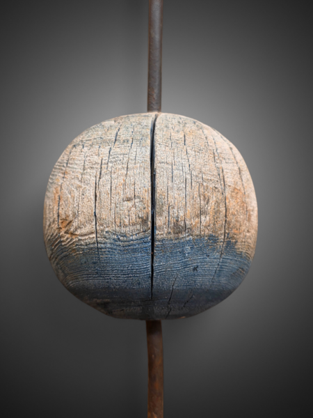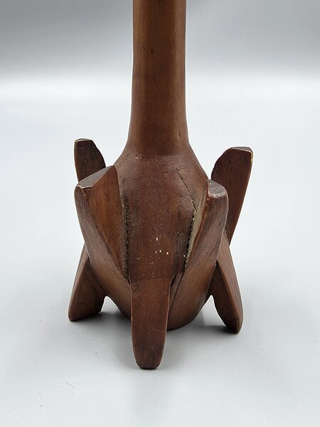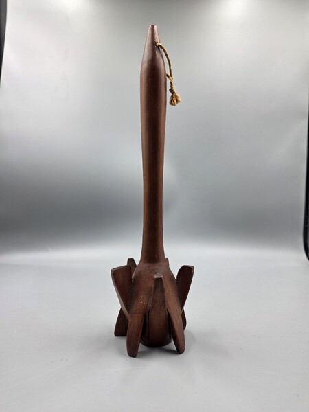 A 19th c. swizzle stick in original finish. Made of pine wood with an unusual head. Really neatly made. Excellent condition with old.steing attachment. 11 3/4"T.