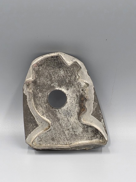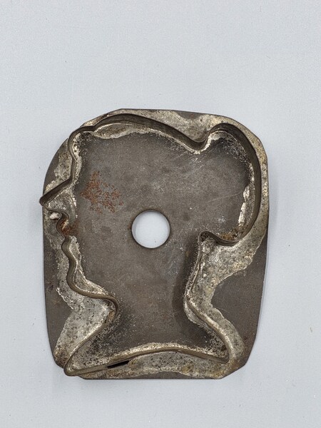 Wonderful side profile view of a man cookie cutter. This cookie cutter would be the man looking at the lady cutter listed. This cutter would also be from the early 20thC. It is not common to find these side profile cookie cutters