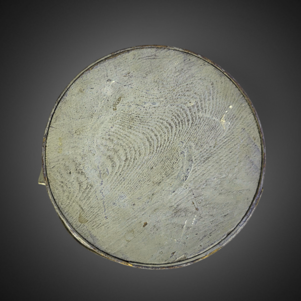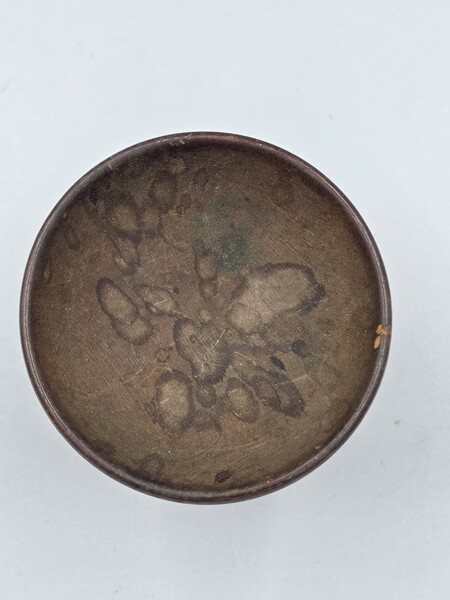 A nice small size 19th c. table top match homder in original brown paint. Made of pine wood and lathe turned. Excellent condition and surface. 2 5/8"T.