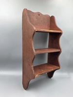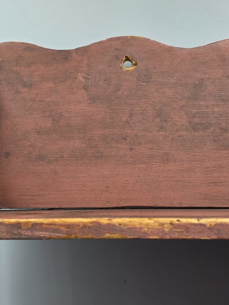 A really nice 19th c. scarce size shelf with cutouts. Made of pine wood and joined with rabbeted joints and iron nail joining. Excellent condition with great surface qualities. Perfect for displaying miniatures or smalls. 12 1/2"W x 12"T x 5"D.