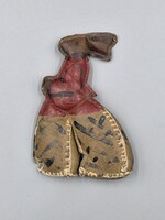 Great old cookie cutter in the shape of the Old Dutch Cleanser girl. She's even carrying the stick to chase the dirt as advertised by Old Dutch. It is 6" tall and 4 1/4" wide.