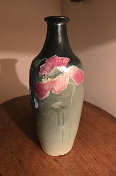 Weller Pottery of Zanesville, OH issued a line of pottery known as "Eocean" circa 1906. This piece measures 11 inches tall and is an excellent example of the pattern. There is an L-shaped scratch on the reverse.